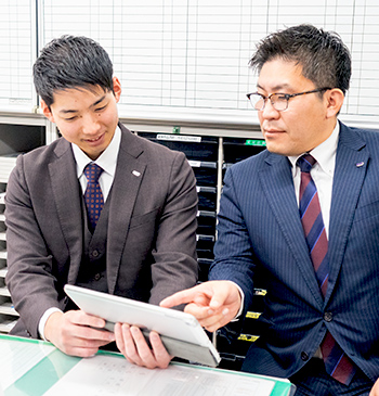 現在は先輩社員に同行させてもらいながらお客様と同時に経験の引継ぎをさせていただいています。前職も営業職をしておりましたので、その経験を生かし、今の仕事にアレンジをして、お客様に喜んでいただくために日々勉強にも力を入れています。